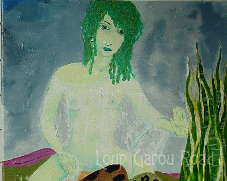 Sasha Huermi with Her Anaconda - 16x20 Acrylic on Canvas - VIEW UNCROPPED