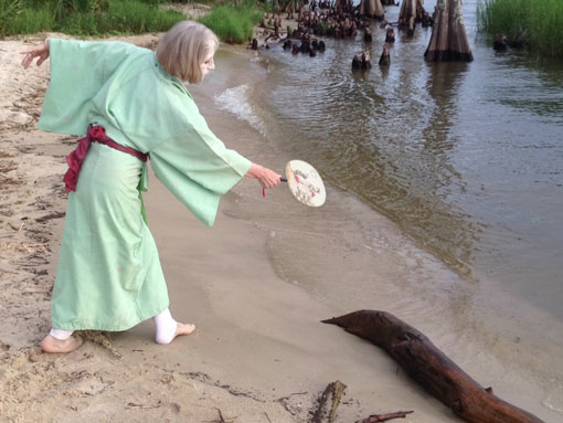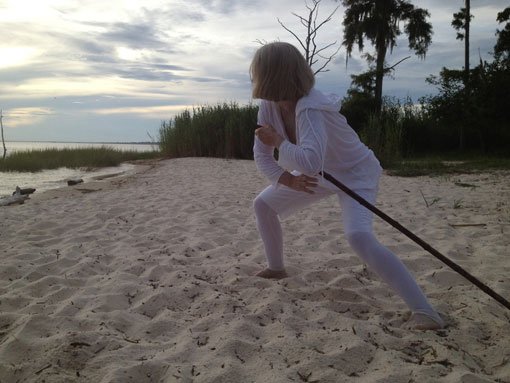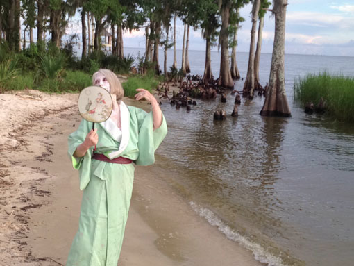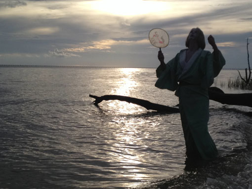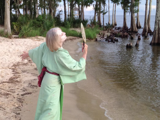 I practice Butoh as dance of nature, with or without audience. The trees are watching, the earth is watching, the birds, air, clouds. All dances, all breathes, all watches. I dance in my gardens and on the shores of Lake Pontchartrain.