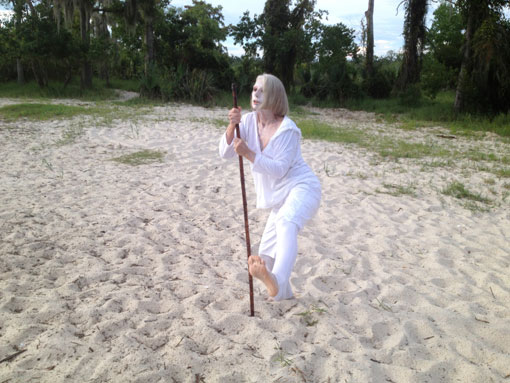 The idea of photography came up. I favored the idea of stills over film because again it's what you catch that is meant to be caught. So I began working with this Butoh for a while. A few months went by. I began to go to the beach by myself to dance ... no audience, nobody ... just earth, sand, sky, earth, sea ... but also I was wanting to dance in my gardens because they are like my navel. The lines that tie us to the universe begin at the navel and those that tie me to the natural world begin in my gardens. I give my Butoh dancing performances on the equinoxes and the solstices.