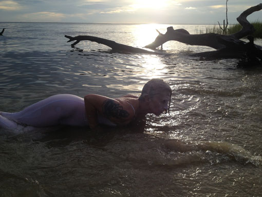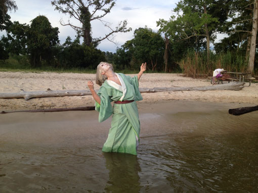 M'man Brigitte had come first of course since She is the link to the Ancestral self, then Dani Blanc who coils and uncoils on the beam between the worlds, creating and annihilating. Shiva's own Naga. Working with Azaka in dance I thought these are peasants and laborer's movements - something my body should be quite familiar with. And remember. Dancing near and in water brought out Oshun. She manifested beautifully, naturally. Of course. Maman Brigitte is danced in Her own costume, one that I created out of a vintage wedding dress for a ritual performance. Oshun has Her own kimono and Ochosi appears with Oshun throughout the dance. Dani Blanc strips to the bare body to merge with the flows of the water, the birthing waters of the Earth. Butoh is the dance of giving of oneself. Give up the ego to open yourself up to be a channel of energy, ancestral energy, healing energy, wisdom energy. The allowance of the body to be the vessel is the gift, the offering in the ritual of dance.